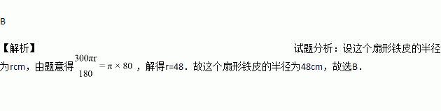 已知一块圆心角为300°的扇形铁皮,用它做一个圆锥形的烟囱帽(接缝忽略不计),圆锥的底面圆的直径是80cm,则这块扇形铁皮的半径是( )