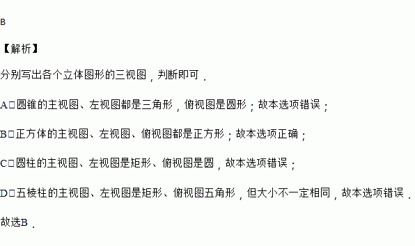 A. 圆锥 B. 正方体 C. 圆柱 D. 五棱柱