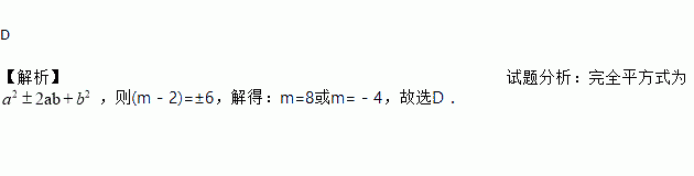 A. 8 B. -4 C. ±8 D. 8或-4