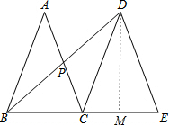 (2)求出AC∥DE.求出$\frac{PC}{DE}$=$\frac{BC}{BE}$=$\frac{1}{2}$,求出PC和PD,即可求出答案.