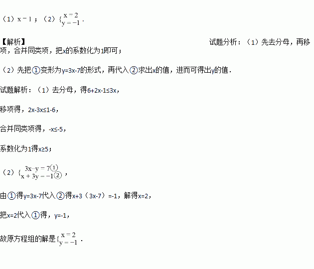 (1)解不等式:2+≤x;(2)解方程组: