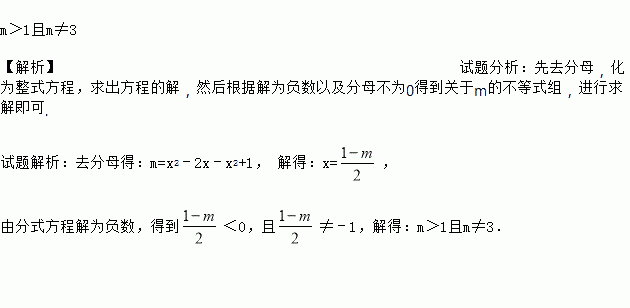当m为何值时.关于x的方程 的解是负数?