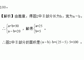 如图1,在边长为a的大正方形中剪去一个边长为b的小正方形,再将图中的阴影部分剪拼成一个长方形,如图2.这个拼成的长方形的长为30,宽为20.则图2中Ⅱ部分的面积是