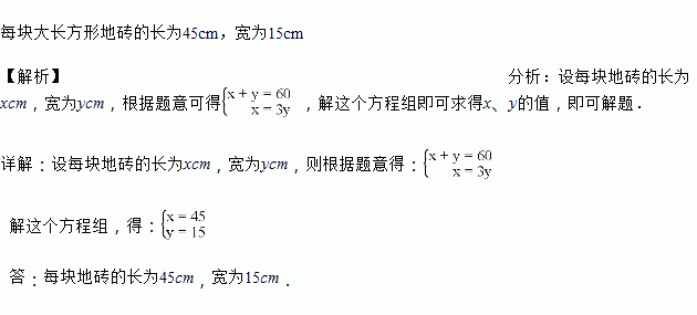 如图,8块相同的长方形地砖拼成一个大长方形,大长方形的宽为60 cm,每块长方形地砖的长和宽分别是多少?