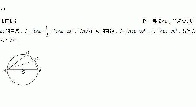 如图,四边形内接于⊙, 为⊙的直径,点为的中点.若,则_______.