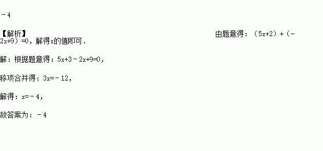 如果5x+3与-2x+9是互为相反数,则x的值是_______