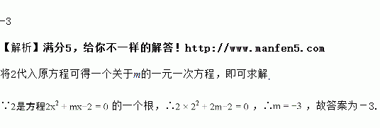 关于x的方程2x2+mx﹣2=0的一个根是2,则m=_____.
