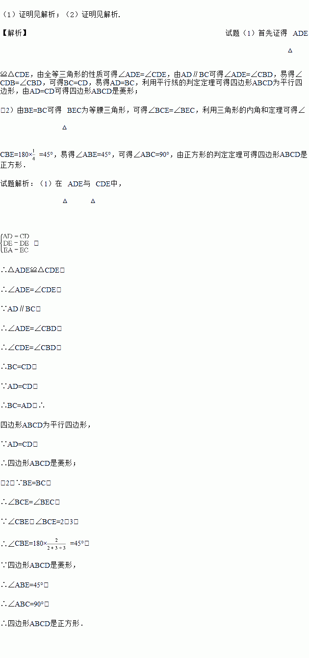 (2)如果BE=BC,且∠CBE:∠BCE=2:3,求证:四边形ABCD是正方形.