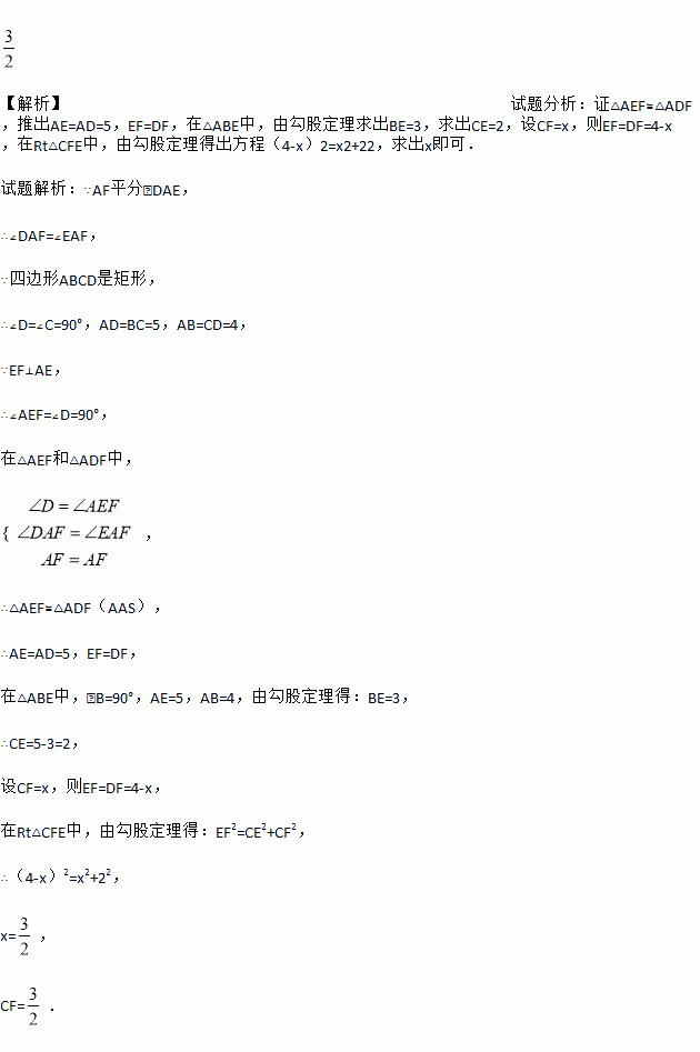 如图,矩形ABCD中,AB=4,BC=5,AF平分∠DAE,EF⊥AE,则CF=______.