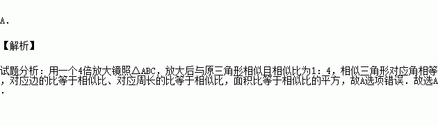 用一个4倍放大镜照△ABC,下列说法错误的是( )