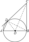 分析:(1)连接OD,要证明CD为圆O的切线,只要证明∠CDB=90°即可;