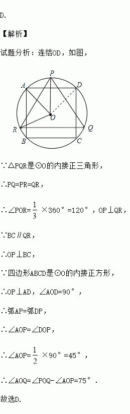 如图,在△PQR是⊙O的内接三角形,四边形ABCD是⊙O的内接正方形,BC∥QR,则∠AOR=( )