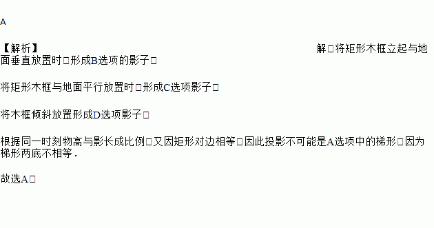 在一个晴朗的上午,小丽拿着一块矩形木板在阳光下做投影实验,矩形木板在地面上形成的投影不可能是( )