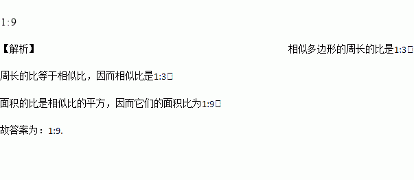 两个相似多边形的周长之比为1∶3,则它们面积之比为______.
