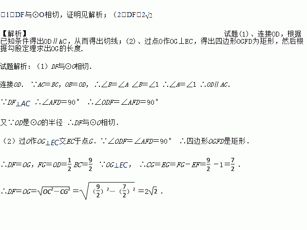 (1)判断DF与⊙O的位置关系,并证明你的结论;