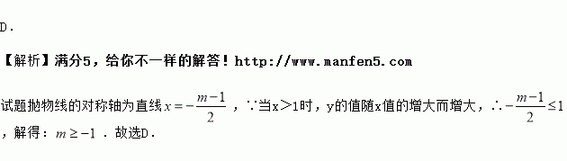 (2分)已知二次函数,当x>1时,y随x的增大而增大,而m的取值范围是( )