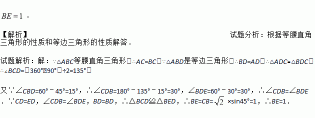 如图,以等腰直角三角形ABC的斜边AB为边作等边,连接DC,以DC当边作等边、E在C、D的同侧,若,求BE的长.