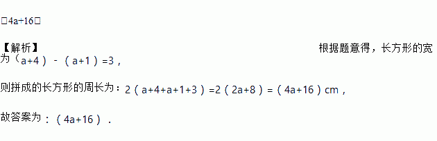 如图,从边长为(a+4)cm的正方形纸片中剪去一个边长为(a+1)cm的正方形(a>0),把剩余部分沿虚线又剪拼成一个长方形(不重叠无缝隙),则拼得的长方形的周长为_____cm.(用含a的代数式表示)