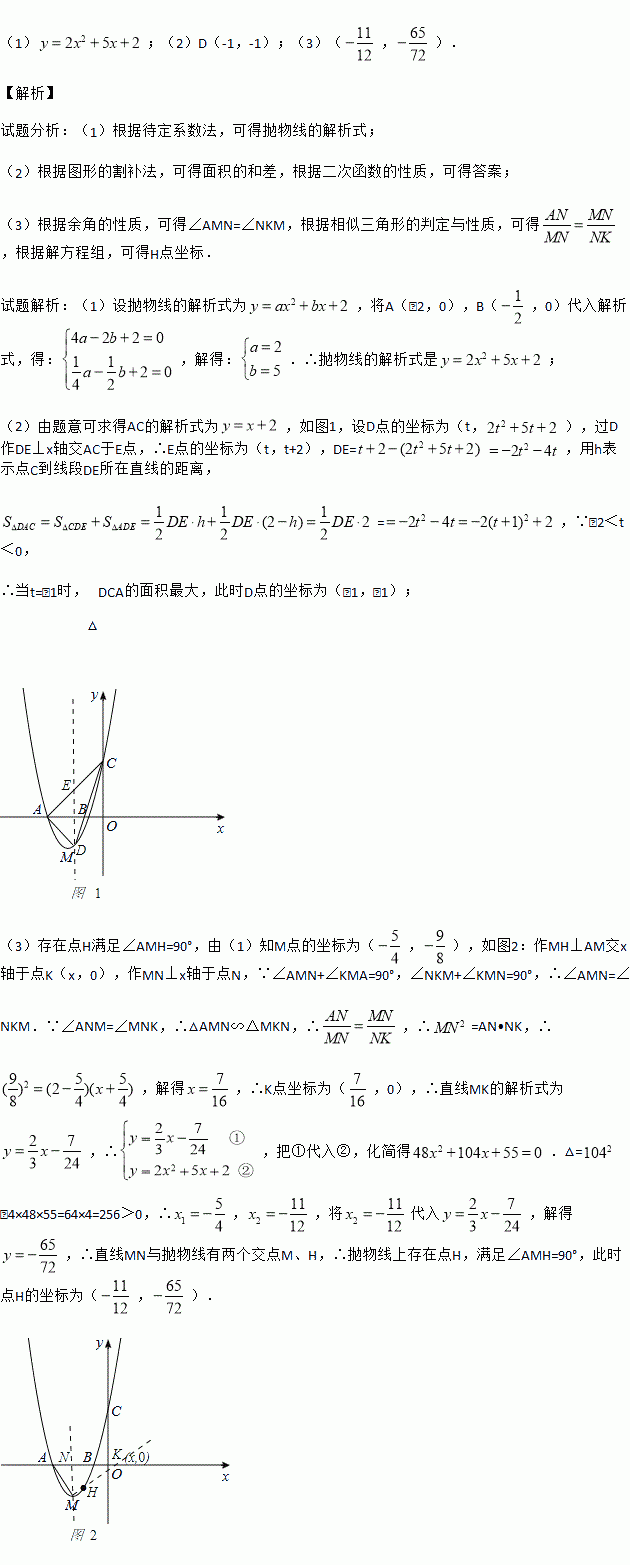 (2)在直线AC下方的抛物线上有一点D,使得△DCA的面积最大,求点D的坐标;