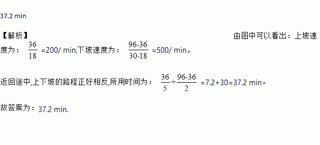 小明早晨从家骑车到学校,先上坡,后下坡,行驶情况如图所示,如果返回时上、下坡的速度与去学校时上、下坡的速度相同,那么小明从学校骑车回家用的时间是____________.