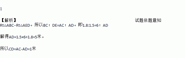 如图,某班上体育课,甲、乙两名同学分别站在点C,D的位置时,乙的影子恰好在甲的影子里边,已知甲身高1.8米,乙身高1.5米,甲的影长是6米,则甲、乙同学相距____米.