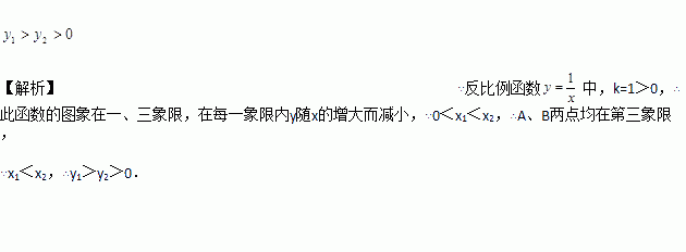 点A(x1,y1),B(x2,y2)是反比例函数的图象上两点,若0<x1<x2,则y1、y2的大小关系是__.