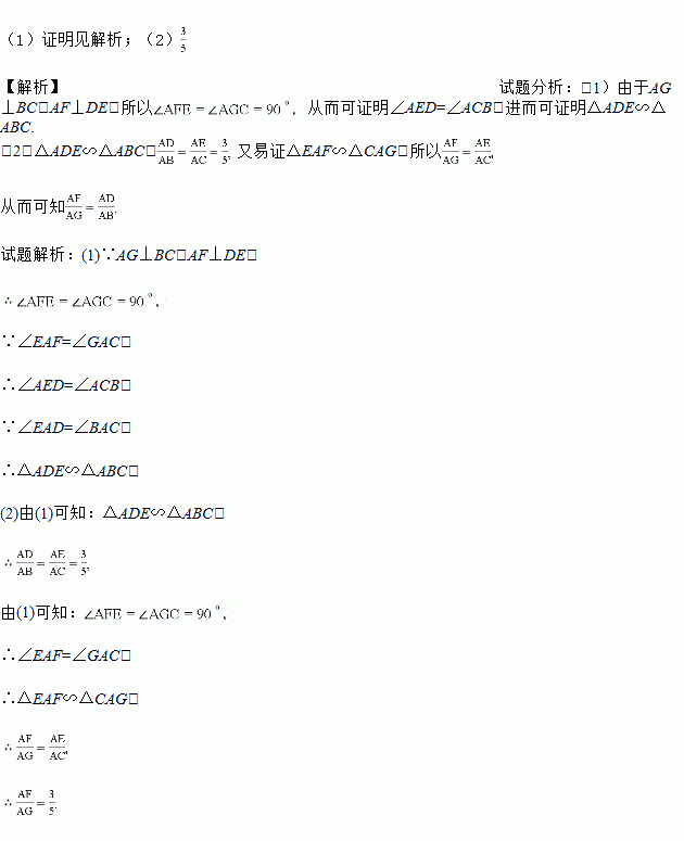 如图,在锐角三角形ABC中,点D,E分别在边AC,AB上,AG⊥BC于点G,AF⊥DE于点F,∠EAF=∠GAC.