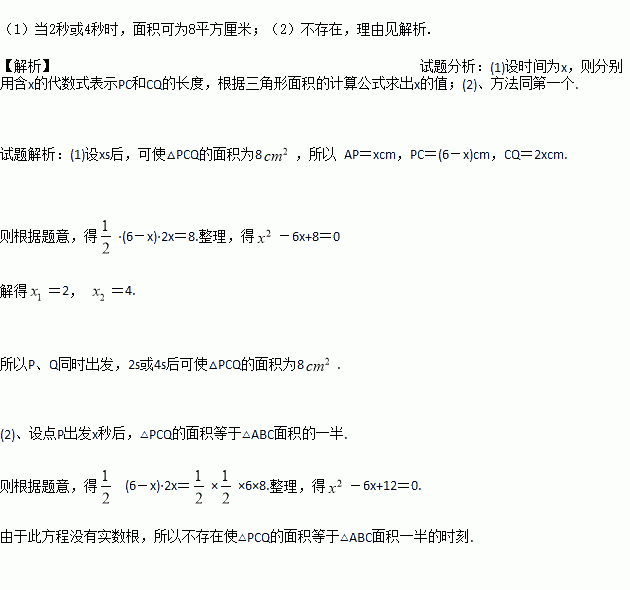 (1)如果P,Q同时出发,几秒钟后,可使△PCQ的面积为8平方厘米?