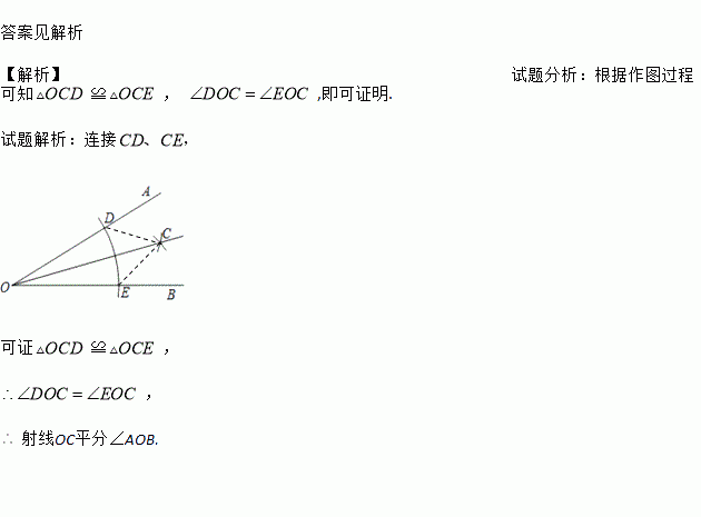 DE的长为半径画弧,两弧在∠AOB的内部相交于点C;