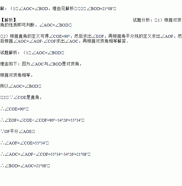 (2)若∠COF=34°26′,求∠BOD.