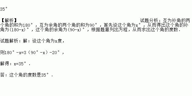 一个角的补角比它的余角的3倍少20,求这个角的度数.