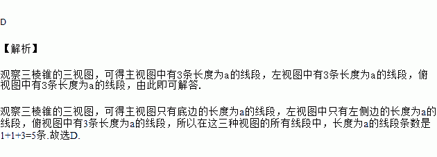 如图①,是一个每条棱长均相等的三棱锥,图②是它的主视图、左视图与俯视图.若边AB的长度为a,则在这三种视图的所有线段中,长度为a的线段条数是( )