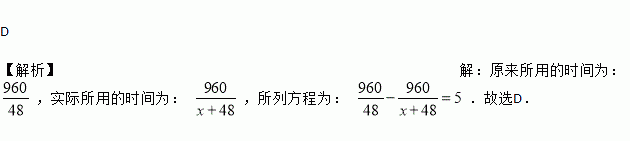 某服装加工厂加工校服960套的订单,原计划每天做48套.正好按时完成.后因学校要求提前5天交货,为按时完成订单,设每天就多做x套,则x应满足的方程为( )