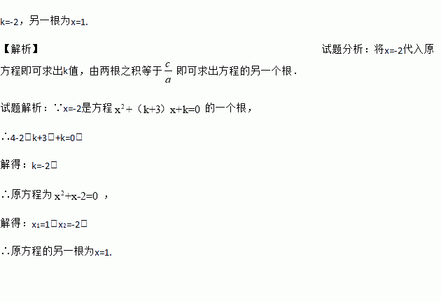 已知关于x的一元二次方程的一个根是x=-2,求k的值以及方程的另一根.