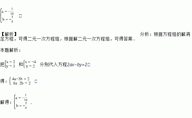 已知和是关于x,y的二元一次方程2ax-by=2的两组解,求a,b的值.