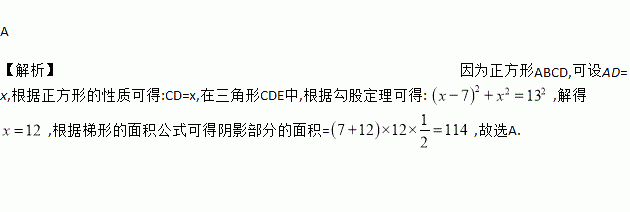 如图,点E在正方形ABCD的边AD上,已知AE=7,CE=13,则阴影部分的面积是( )