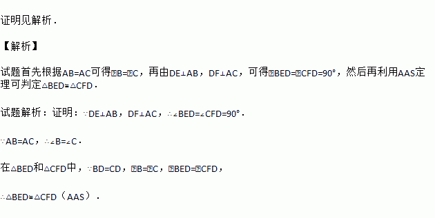 求证:△BED≌△CFD.