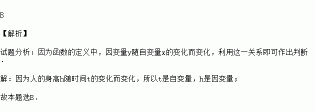 人的身高h随时间t的变化而变化,那么下列说法正确的是( )