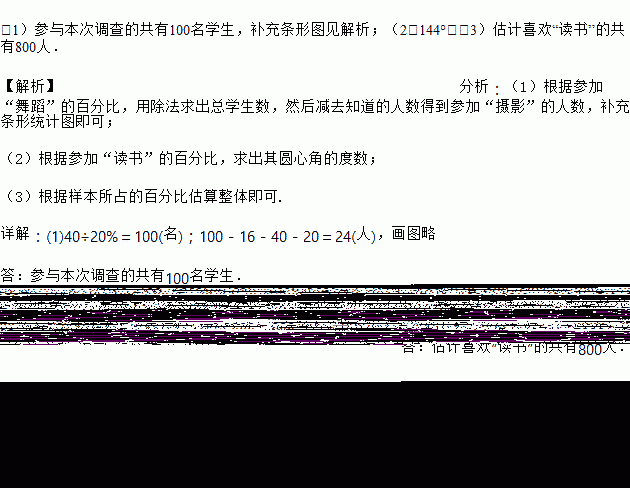 (3)若该校共有学生2000人,请你估计该校最喜欢读书活动的人数.