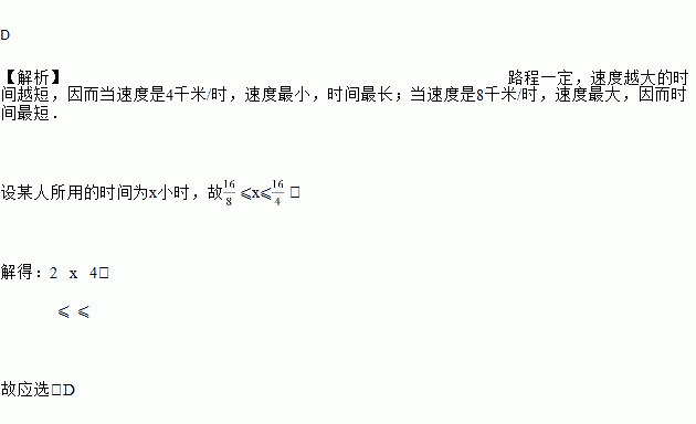甲地到乙地有16 km,某人以4 km/h~8 km/h的速度由甲地到乙地,则他用的时间大约为( )