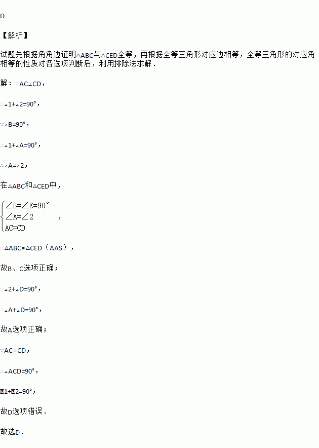 如图所示,已知AC=CD,∠B=∠E=90°,AC⊥CD,则不正确的结论是( )