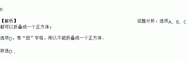 以下各图不能折叠成一个正方体的是( )