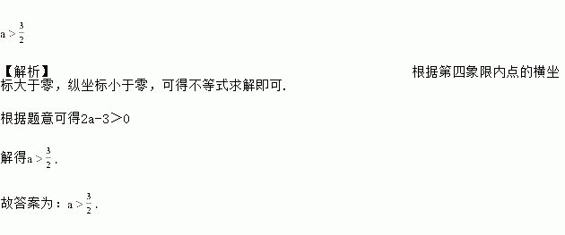 已知平面直角坐标系中,点A(2a-3,-2)在第四象限内,则a的取值范围是_____.