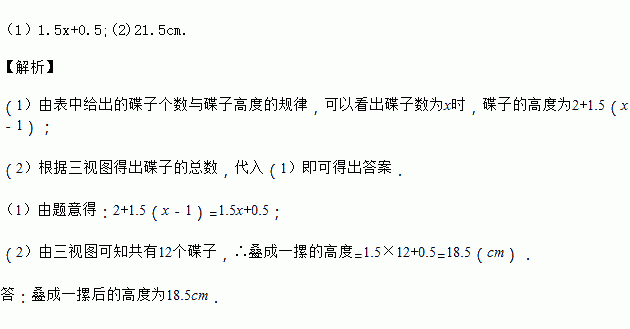 (1)当桌子上放有x(个)碟子时,请写出此时碟子的高度(用含x的式子表示);