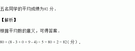 某老师把某一小组五名同学的成绩简记为:,,,,,又知道记为的成绩表示分,正数表示超过分,则五名同学的平均成绩为多少分?