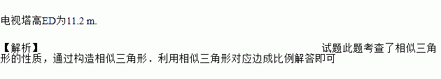 如图,某测量工作人员眼睛A与标杆顶端F、电视塔顶端E在同一直线上,已知此人眼睛距地面1.6米,标杆高为3.2米,且BC=1米,CD=5米,求电视塔的高ED.