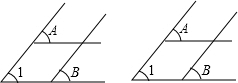 ①如左图,∵∠A与∠B的两边分别平行,∠A=20°