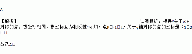 A 【解析】试题解析:根据“关于y轴对称的点,纵坐标相同,横坐标互为相反数”可知:点P(-1,2)关于y轴对称的点的坐标是(1,2). 故选A.