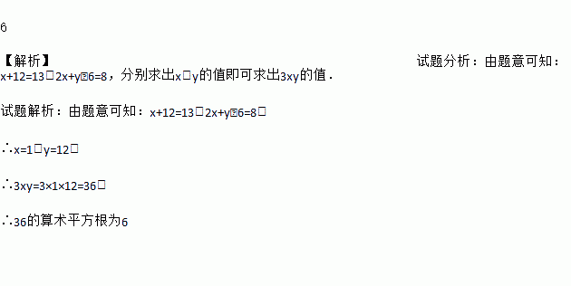 ,2x+y﹣6的立方根是2,求3xy的算术平方根.