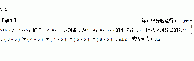 若一组数据 3,4,x,6,8 的平均数为 5,则这组数据的方差是__________.